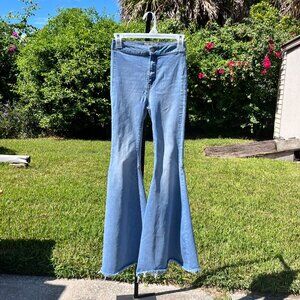 Keywords: High Rise High Waisted Festival Rave Coachella Summer Boho Indie Light Wash Bell Bottoms Bohemian