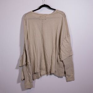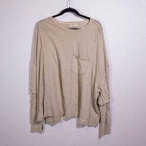 We The Free People Kick Flip Long Sleeve Henley Front Pocket Tee Shirt Beige S
