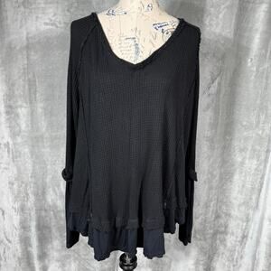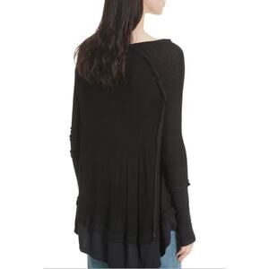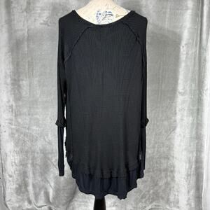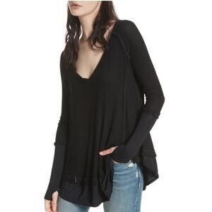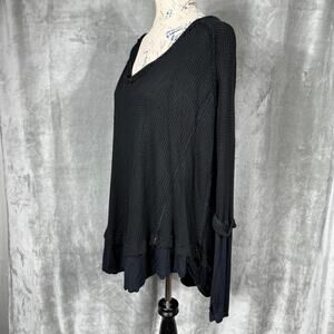 We The Free People Laguna Thermal Waffle Knit Thumbhole Top Medium Blk