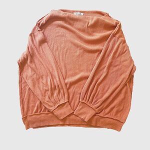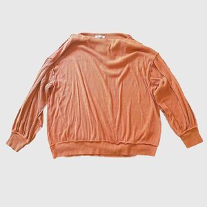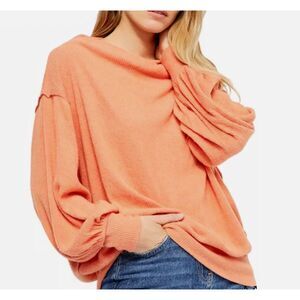 Beautiful and comfortable sweatshirt by We The Free / Free People. Size large. Its an oversized sweater. 25" length, 25" armpit to armpit. Its got a ribbed look and feel and the seams are sort of inside-out style. See pics! Ask questions before purchase! A beautiful coral orange color. Excellent used condition with no visible flaws.