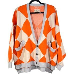 We The Free People Manny Checkered Oversized Cardigan Orange Womens XS Pre-Loved