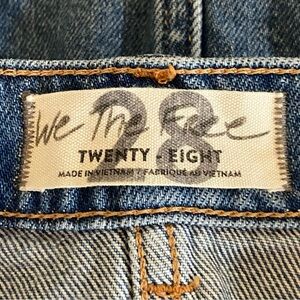 We The Free People Mini Jean Skirt Sz 28 Denim Pleated Raw Hem Preppy Academia