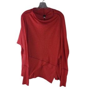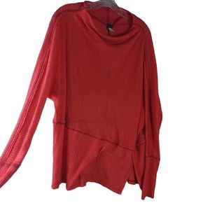 Free People We the Free Burnt Orange Mock Neck Long Sleeve T-Shirt Oversized XS