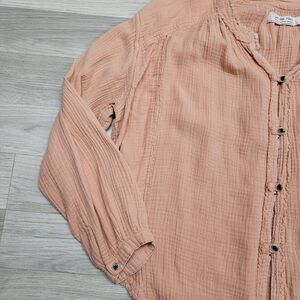 We The Free People Orange Cotton Distressed Blouse Size Small Oversized Button