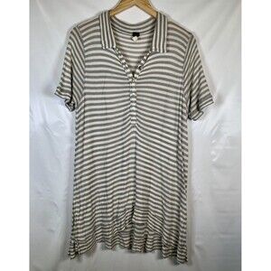 Introducing the We The Free People Ryan Oversized Gray Striped Knit Henley Tunic in size XS. This stylish tunic features short sleeves and a V-neckline with button closure. Perfect for travel, parties, or casual wear, the multicolor striped pattern and lightweight woven cotton fabric make it an ideal addition to any wardrobe.