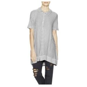 We The Free People Ryan Gray Striped Oversized Knit Henley Tunic Size XS