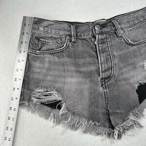 We The Free People Shorts Womens 26 Faded Gray Denim Button Fly Anthropologie Boho Grunge Festival Rodeo Cowgirl