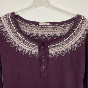 We The Free People Thermal Fair Isle Henley Shirt Size M Purple Brown Boho Ski