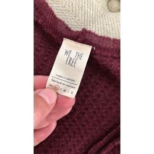 We The Free People burgundy thermal tunic. Long and loose, with Vneck and rounded hem. Raw edges. Laying flat measures approximately 31 inches from shoulder to hem at the longest point and 20 inches from armpit to armpit.