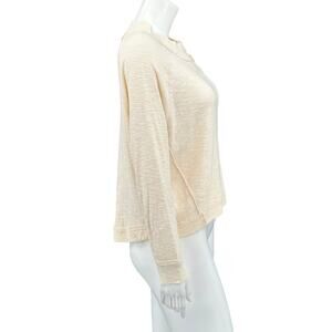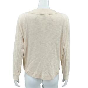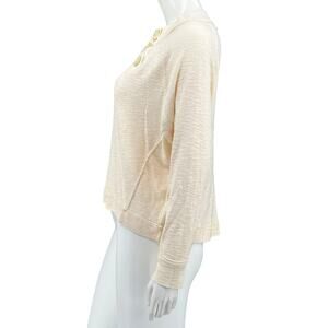 We The Free People Top Womens XS Cream Dont Forget Me Slub Knit Hi Lo Sheer Long Sleeves Pullover Raw Edges Cotton Blend Cool Weather Oversized Style OB894128