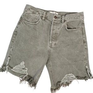 We The Free People Womens Caroline 26 Shorts Cutoff Distressed Denim Olive Green