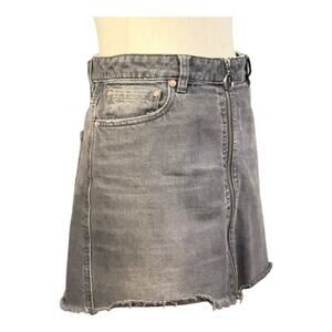 We The Free Black Washed Denim Mini Skirt Raw Hem Size 10 Free People