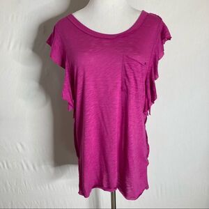 We The Free Pink So Easy Ruffle Sleeve Tee Small Free People Fuchsia NWT