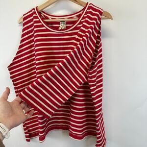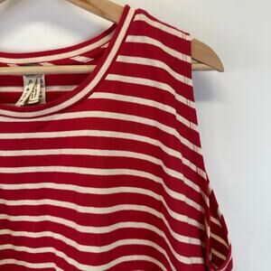 We The Free Red and White Stripe Boxy High Low Muscle Tank Womens Size Small