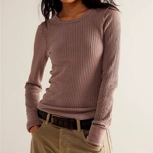 Totally timeless thermal from our We The Free collection featured in a soft ribbed knit and slim-fitting silhouette with a round hemline and thumb holes at both sleeves.