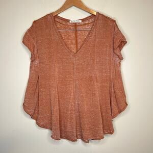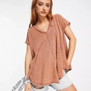 We The Free Sammie Tee V-Neck Flowy in Washed Brown