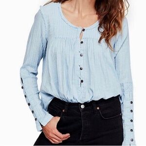 We The Free Sand Dune Linen Henley Top Sz S EUC