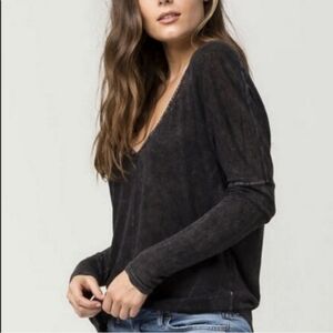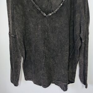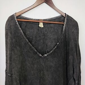 We The Free Santa Cruz Henley Top Oversized Graphite Linen Boho Size Medium