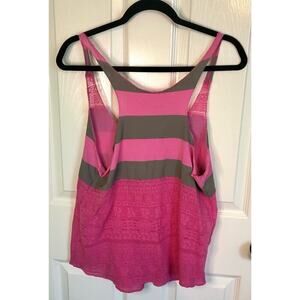 We The Free Scoop Neck Knit & Lace Pink & Gray Racerback Tank Top Size Medium