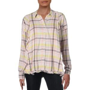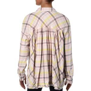 We The Free Seeking Starlight Plaid Button Front Casual Top Pink Size Large