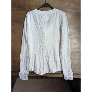 We The Free Shirt Top Women's Large White Long Crochet Sleeves Button Front NWT
