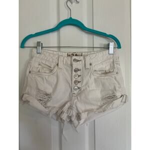 We The Free Size 24 White Denim Shorts Distressed Button Fly