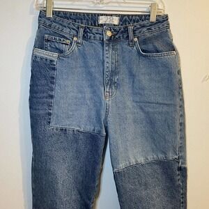 We The Free Size 28 Pieced Jeans Blue Denim Mom Straight Leg Hi-Rise OB9…