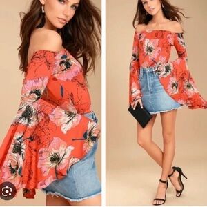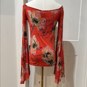 We The Free Size SP Asymmetrical Pleated Blouse Floral off shoulder Bell Sleeve