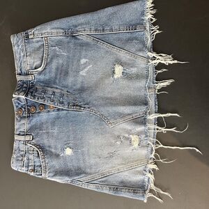 We The Free Skirt Womens 28 Denim Distressed Button Fly Mini Free People