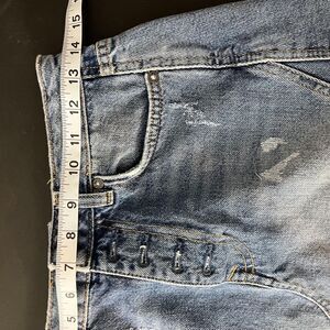 Notes: Classic distressed look with frayed hem; see photos for design and details.