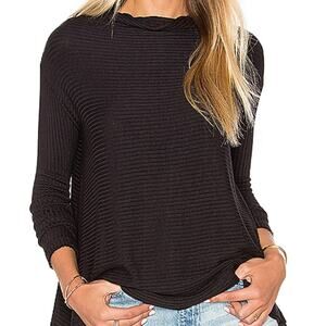 We The Free Small S Lover Rib Thermal Top Black Long Sleeve Split Back Cowl Neck