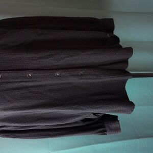 Button Up, with Bottom Button to the side, Or Just wear it Un-Buttoned and open.