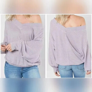 We The Free South Side Thermal Off-Shouler Top in Lilac, Slouchy Fit, EUC!