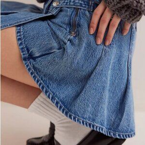 Keywords: Free People skirt shorts, denim mini, festival outfit, edgy chic, cottagecore, casual weekend