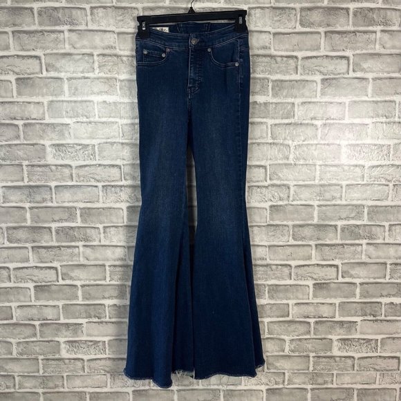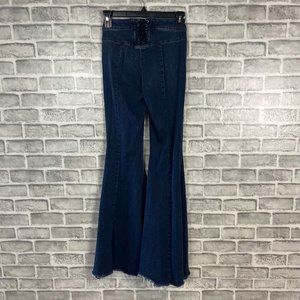 We The Free Super High Rise Lace Up Flare Jeans Size 24 Dark Wash Hippie 24x31