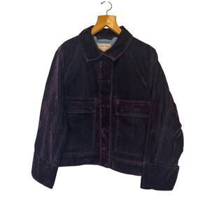We The Free Suzy Flocked Denim Jacket Wine Burgundy Style 9527440 NWT Size Med