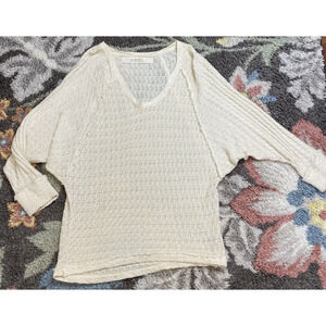 We The Free Sweater Women's Size Large Thien Hacci Oversized Slouchy Coastal Open Knit Pullover w/ Dolman Sleeves. Color is ivory/ cream. Open knit is large enough to see thru..