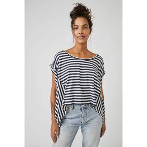 We The Free Sz. S Oversized Asymmetrical Striped Angel Tee