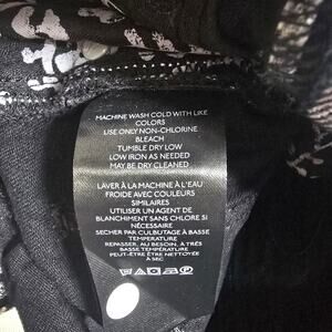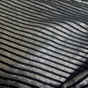 High rise relaxed baggy fit jeans in black and silver metallic stripe.