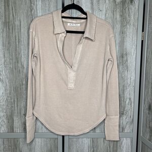 We The Free Top Women XS Thermal Waffle Deep V Neckline Collared Polo Thumbholes