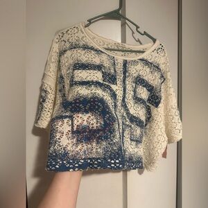 Add a touch of texture to any look with this timeless tee featured in a boxy, cropped silhouette with art-based printing at front in a gorgeous lace fabrication for added dimension.