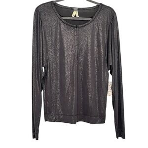 We The Free Tuxy Vibes Shirt Metallic Long Sleeve Top Dark Gray Hook Eye Size S