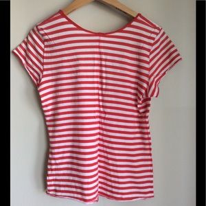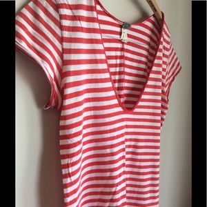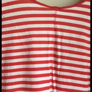 Slightly distressed look! Really cute striped tee! Two small holes on back, see picture! Reflects price