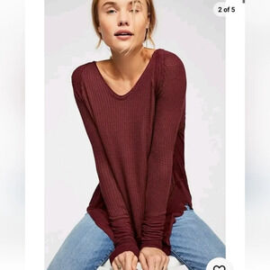 We The Free WINE LONG SLEEVE CURVED Free People CATALINA THERMAL TOP Sz Medium