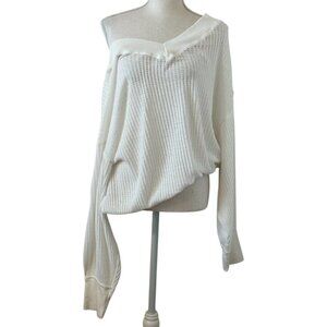 We The Free Waffle Tee Women's Size Large Ivory South Side Tee V-Neck Longline