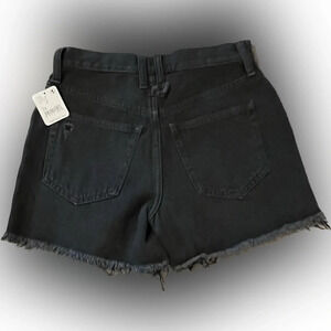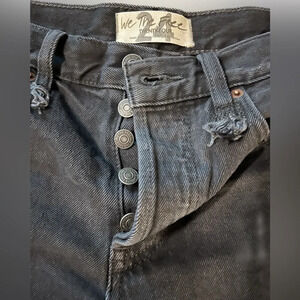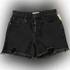 NWT We The Free Washed Black distressed denim button fly shorts, raw hem, 100% cotton, excellent condition, smoke free home
