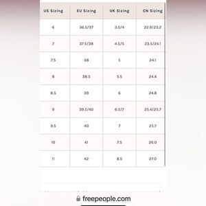 Per the Free People Size Guide on their website, this is euro size 37 which is a US 6