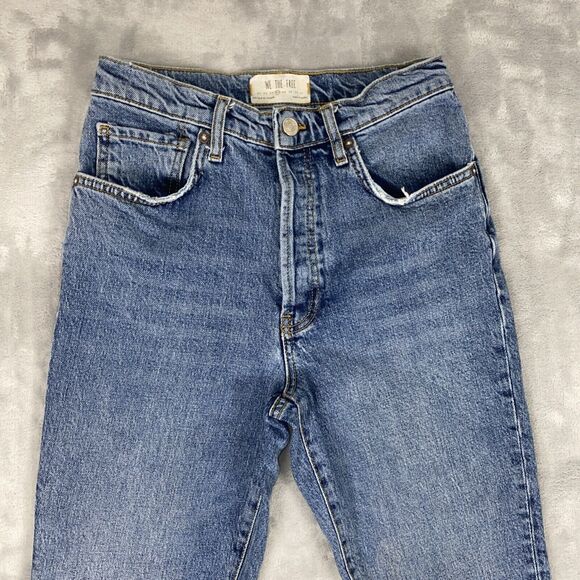 We The Free Womens 27 Cropped Distressed Jeans Medium Wash Button Fly Raw Hem