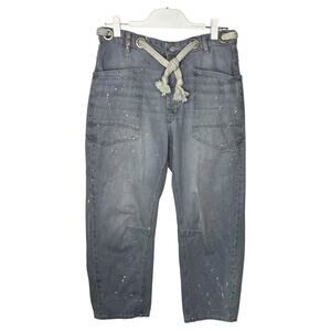 We The Free Women's Barrel Jeans 27 Moxie Gray Pull On Low Slung Paint Splatter