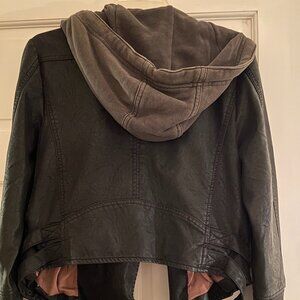 We The Free Jacket Womens Black Vegan Leather Hooded Moto Jacket - Size SX/S It says size XS but would probably fit a small as well.